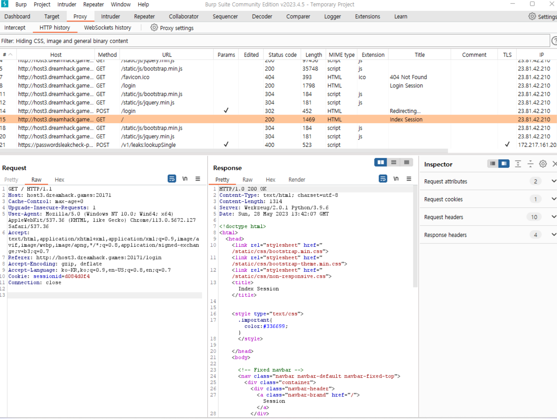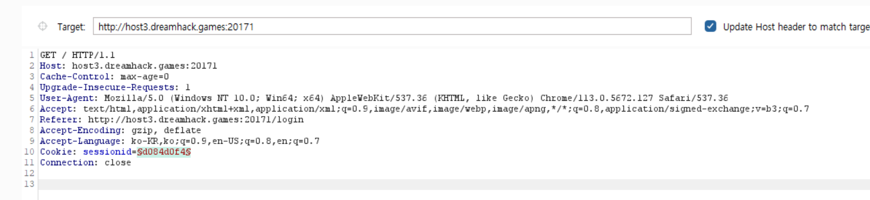 request된 값을 intruder로 보내 seesion_id의 쿠키를 타겟으로 잡는다.