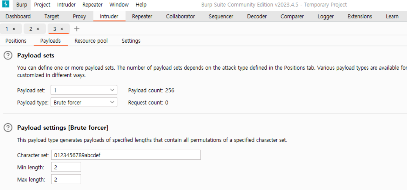 payload type은 Brute forcer로 설정하고,